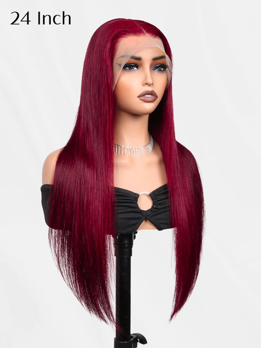 Burgundy Hair 13x4 Lace Front Wig Dark Red Silky Straight Human Hair Wigs