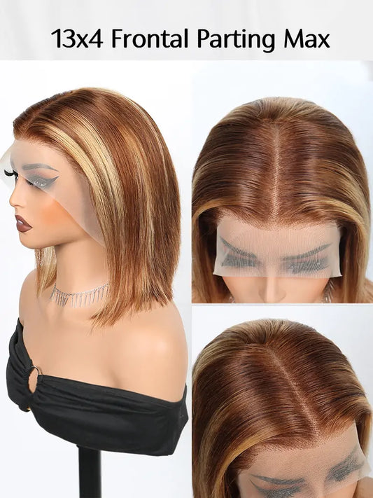Highlight Bob Wig Brown Highlights Straight Hair 13x4 Lace Wigs Human Hair