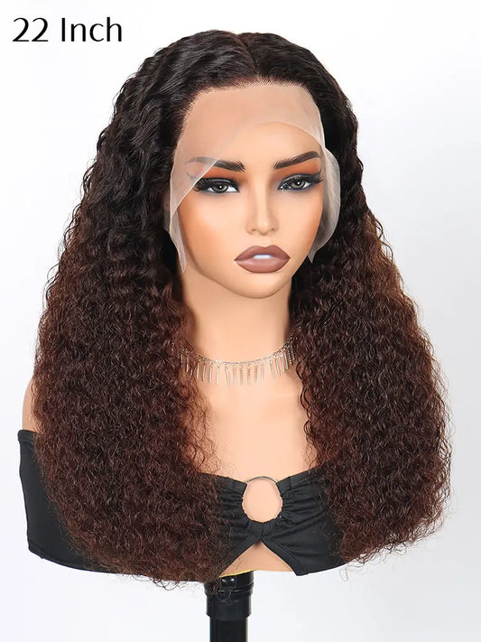 Black Brown Ombre Hair Deep Curly 13x4 Lace Front Wig Human Hair Wigs