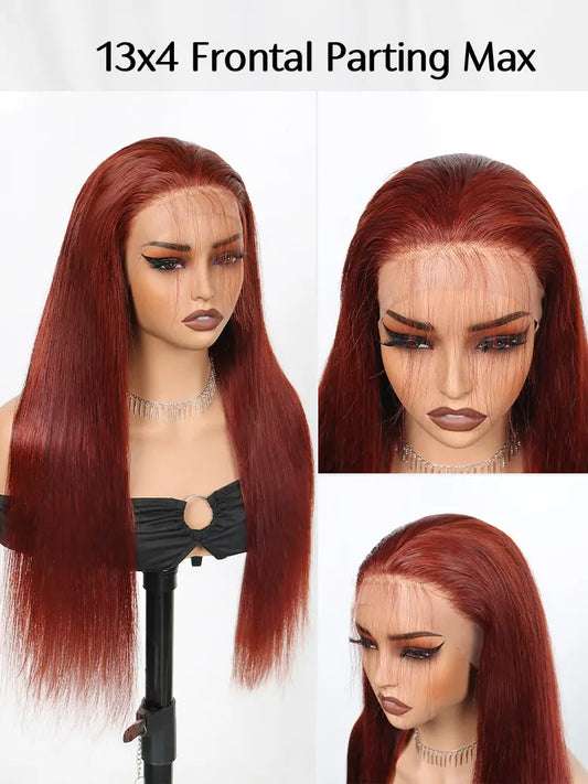 Reddish Brown Hair 13x4 Lace Frontal Wig Silky Straight Human Hair Wigs