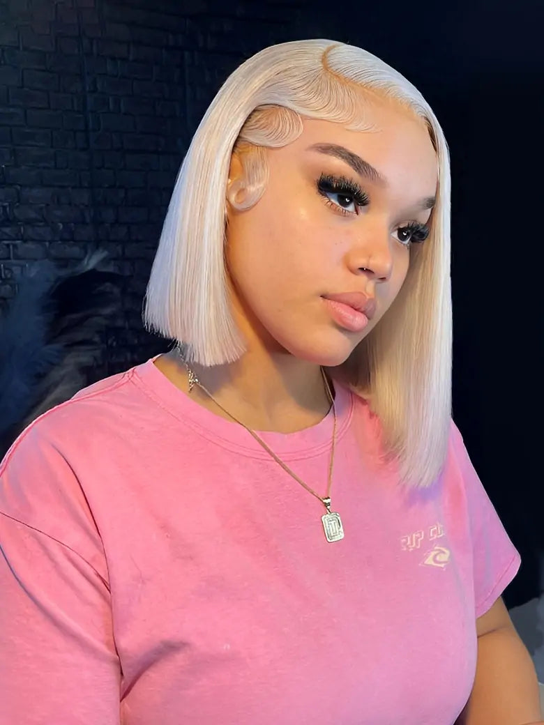 Ash Blonde Bob Wig 13x4 Lace Frontal Wig Straight Human Hair Wigs